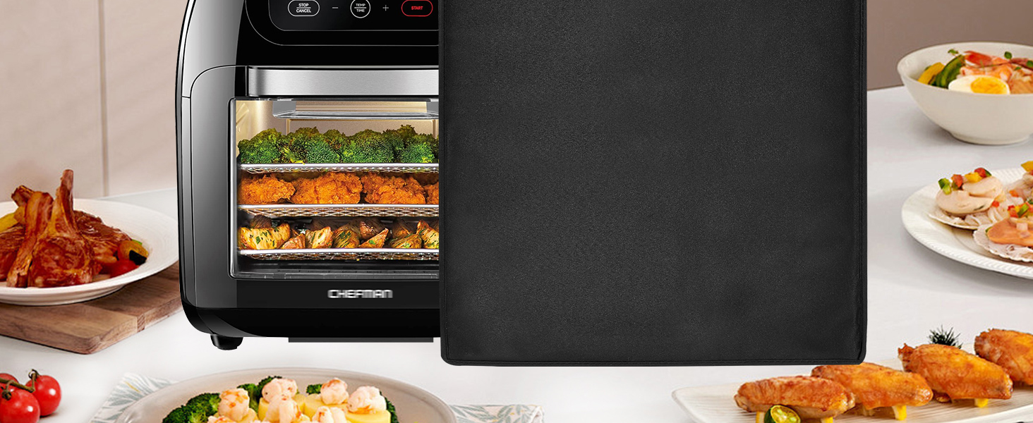 Applicable Models: Nylon dust cover is suitable for CHEFMAN Air Fryer+ Rotisserie,Convection Oven /for Nuwave Brio 15.5Qt 10-IN-1 (please measure the product size before purchasing)