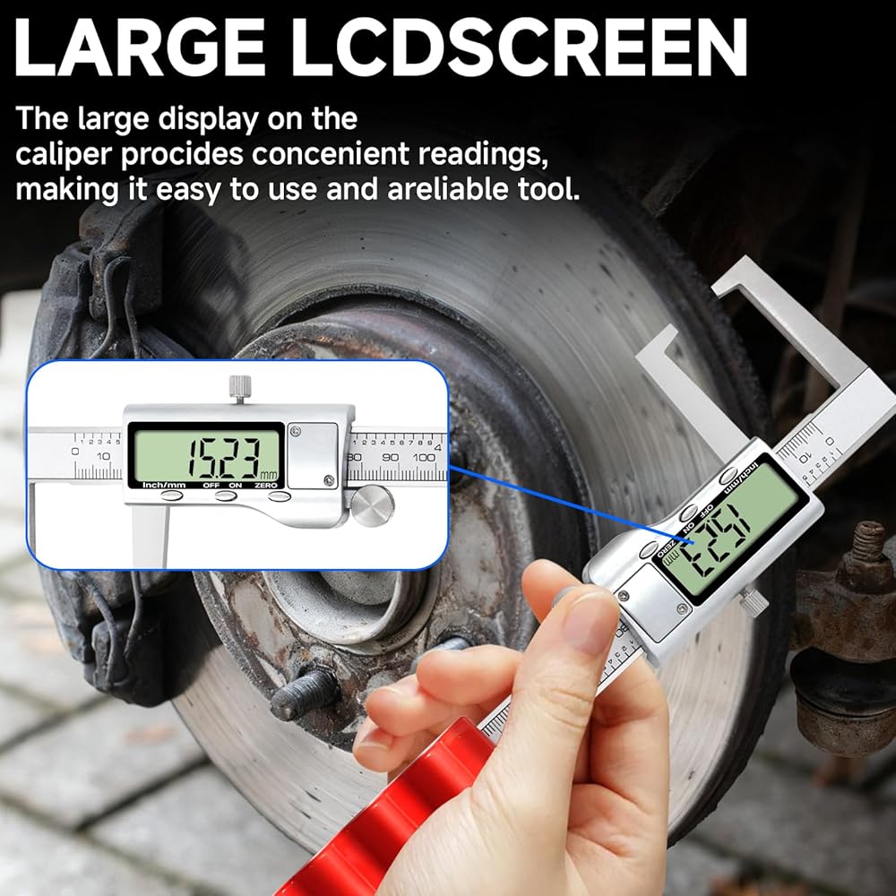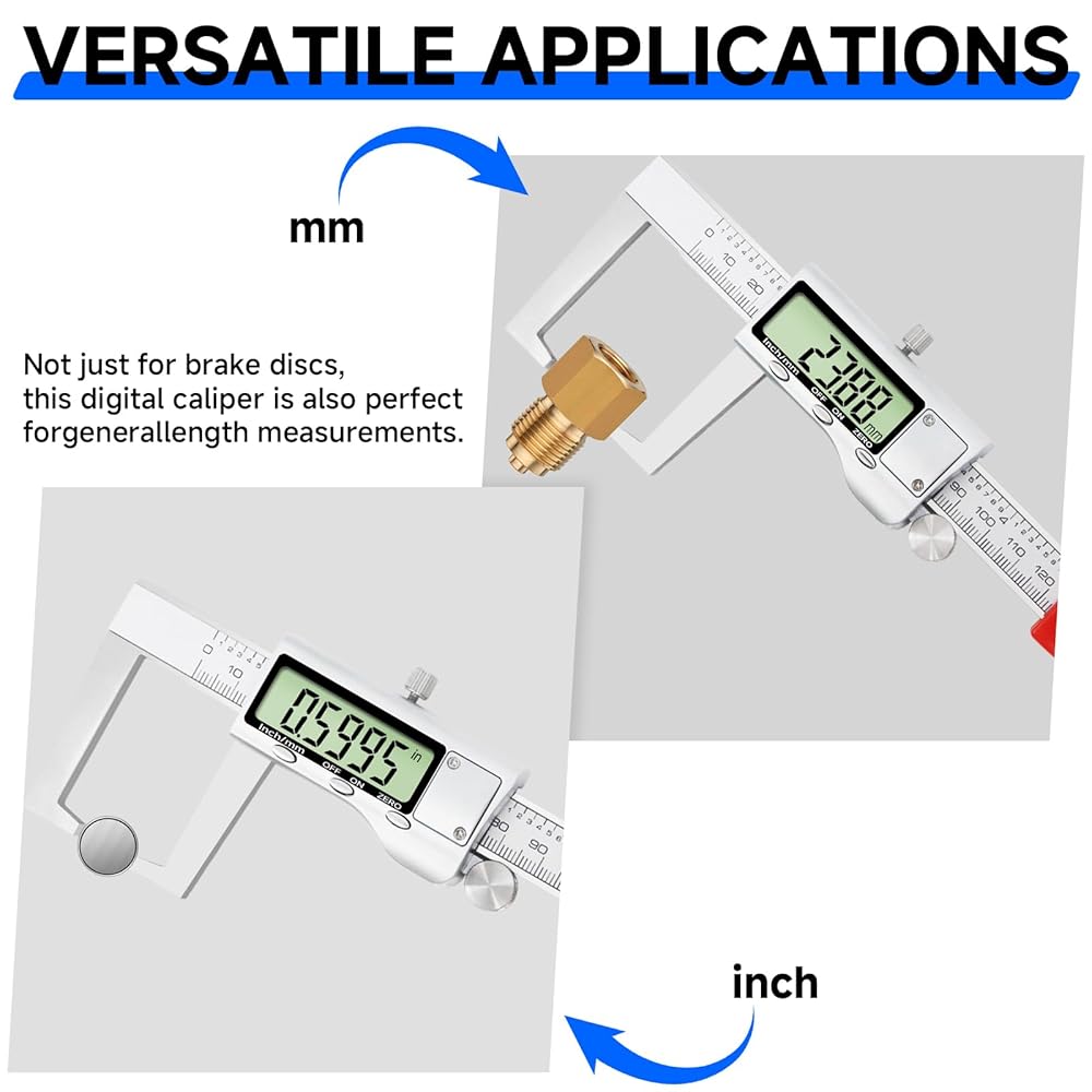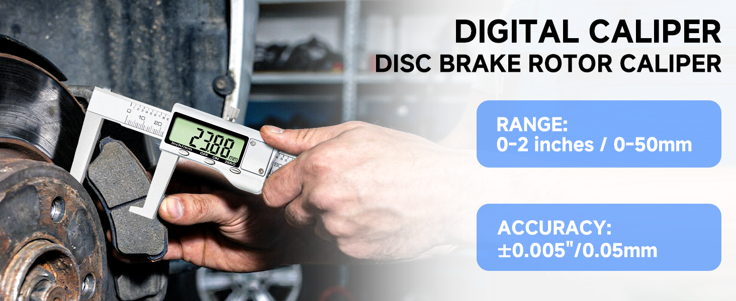 【Accurate Measurement 】This Digital Outside Caliper glides smoothly. Measuring range: 0 -2" / 0-50mm; Accuracy: ± 0.001"/ 0.025mm; Resolution: 0. 0005"/0. 01mm. You can accurately measure the thickness of the brake disc to ensure that your brake system is in top condition.