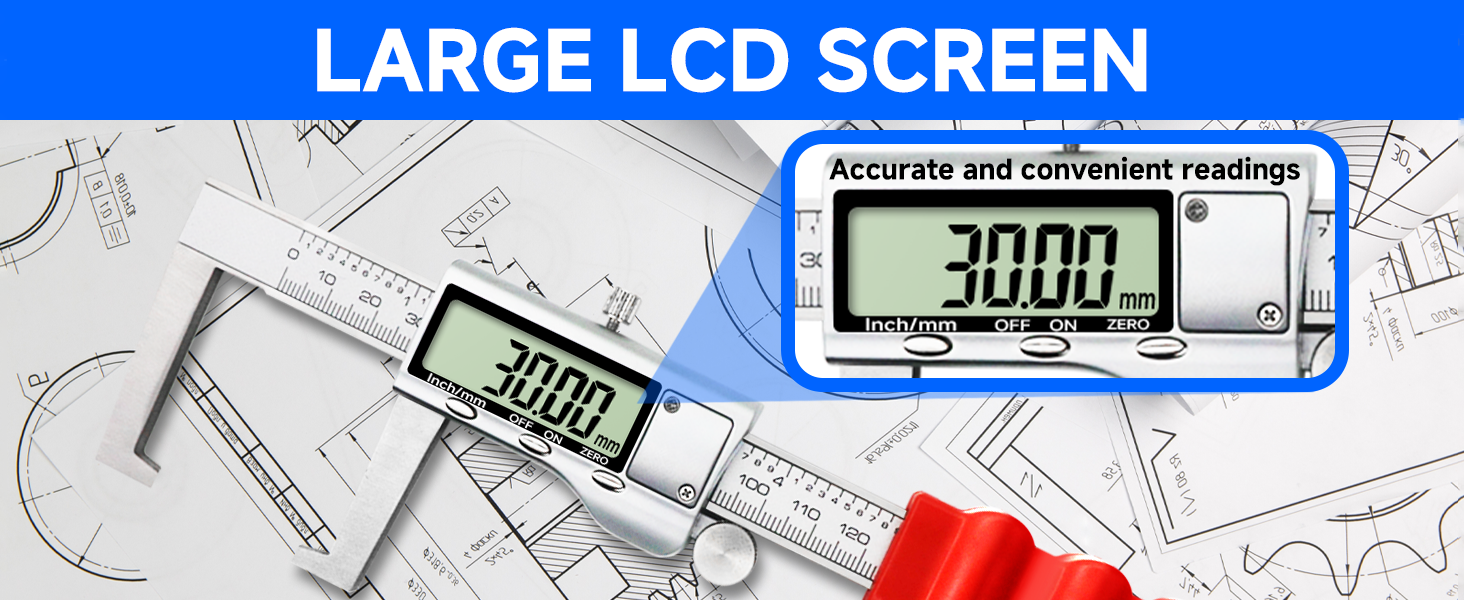 【Large and Clear Display Screen】: Large LCD display gives you a clear reading. The thumb rolling and locking screw provide easy sliding, accurate positioning, and fine adjustment.