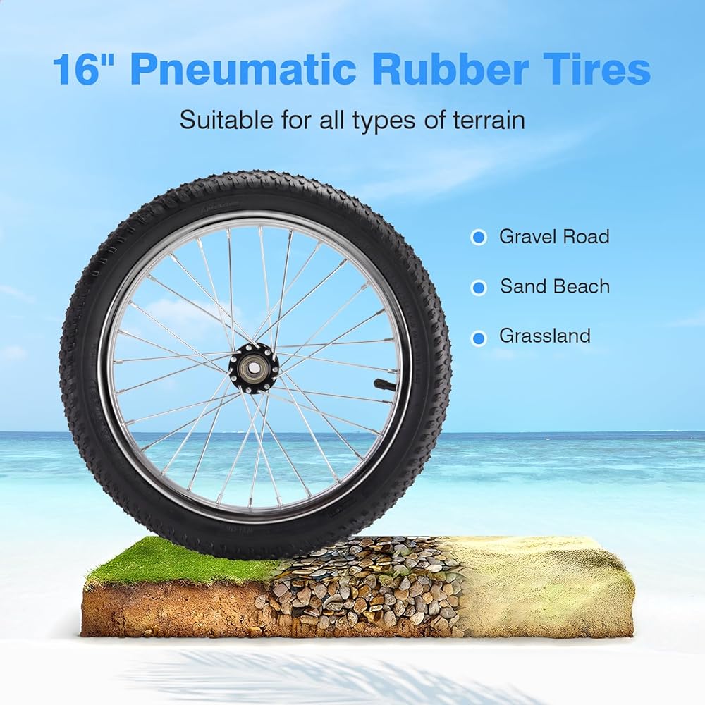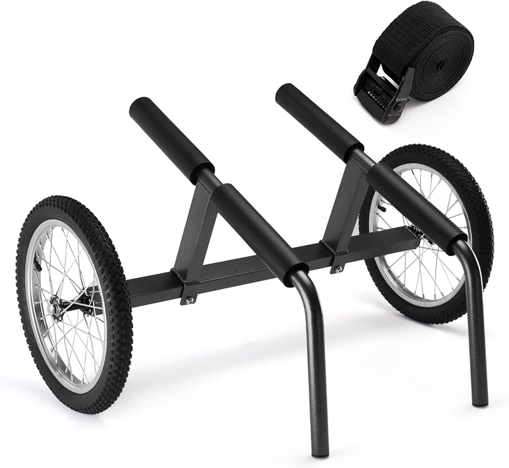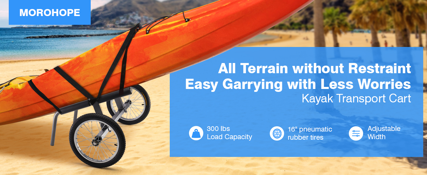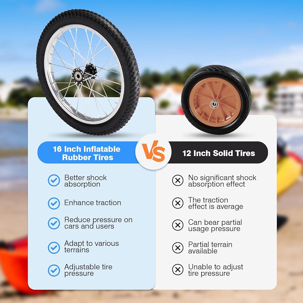 LARGE 16” BUTYL RUBBER TIRE--The 16" big wheels make this kayak wheels cart better and easier on the sand, letting you roll your kayak smoothly across streamlined movement over a variety of terrains like sand, lawns, and rough terrain.