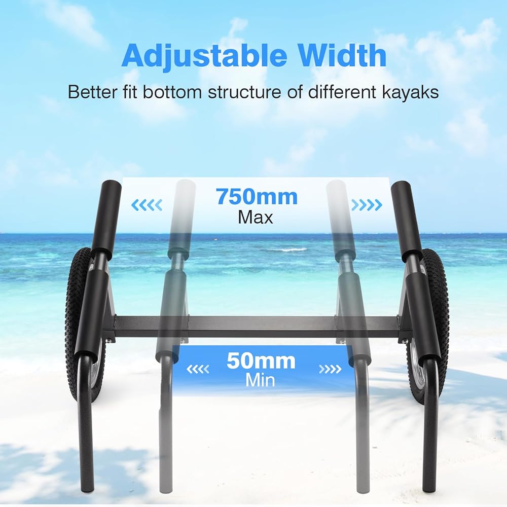 300 LBS CAPACITY KAYAK DOLLY--This kayak cart is fully adjustable while remaining sturdy, easy to use, and holds up to 330 lbs.