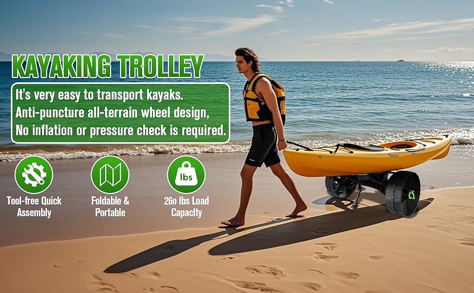 【Strong Weight Capacity】Weight capacity of 120 kg (260 lbs). Kayak cart accommodates various sizes and shapes of kayaks. Suitable for more types of kayaks, including canoes, kayaks, Jon boats, paddleboards, floating mats, etc.