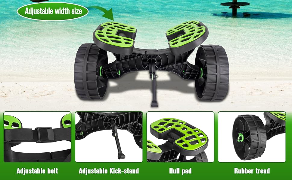 【Reliable Tires Design】This trolley cart with puncture-proof design and all-terrain wheels, with high grip rubber tread which do not need inflation or pressure checks. The kayak dolly capable of rolling smoothly on grassland, sand, cement road, use it with confidence and never have to worry about a flat tire on your kayak.