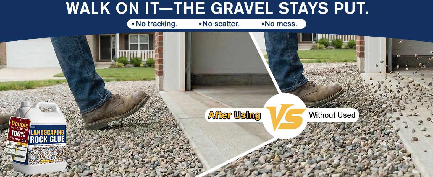 【LOCKS GRAVEL IN PLACE – STOP MESS & CONSTANT REPAIR】-Secure loose gravel, crushed stone, pebbles and decorative rocks in driveways, walkways, patios and garden beds. Prevents shifting, scattering and erosion caused by wind, rain and foot traffic.