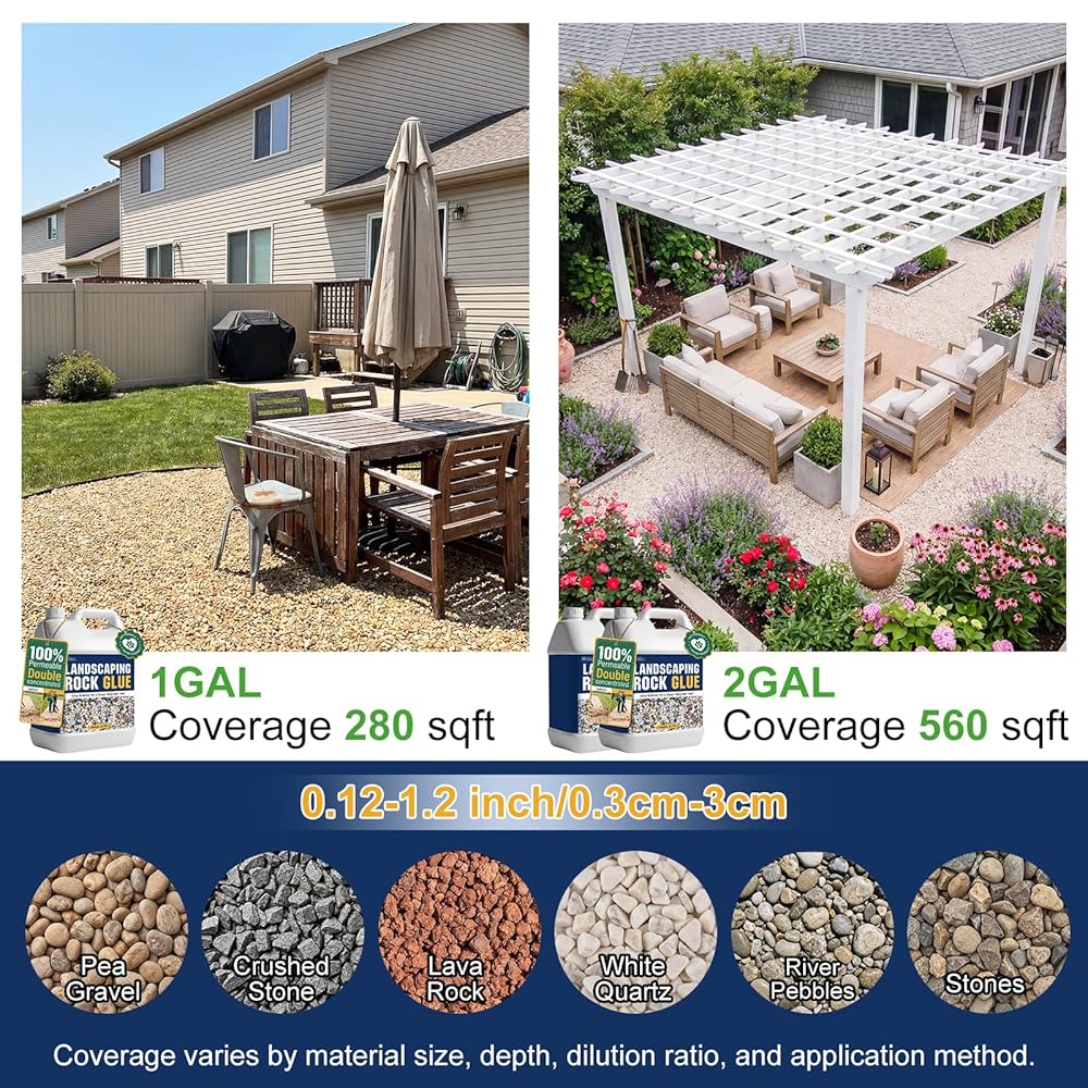 【EASY DIY APPLICATION – PROFESSIONAL RESULTS】- Simply dilute, spray evenly and allow to cure. Works with most landscape materials including gravel, decomposed granite and small stones. A smart solution for DIY landscaping projects and home improvement upgrades.