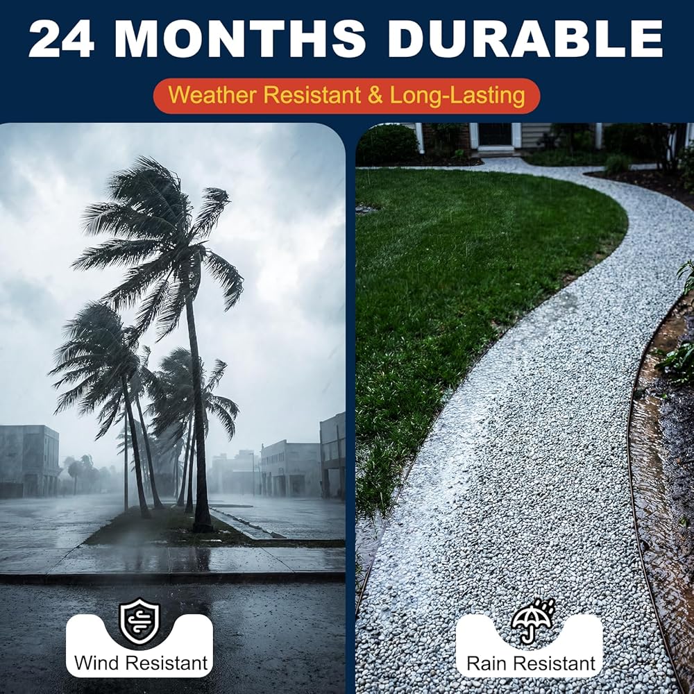 Built to endure harsh conditions, this landscape adhesive resists UV rays, heavy rain, and wind for up to 24 months. It applies white for easy visibility during application and dries to a clear, natural finish that preserves the look of your stones. The advanced formula creates a permeable bond, allowing water to drain naturally through the gravel, preventing pooling in flower beds.