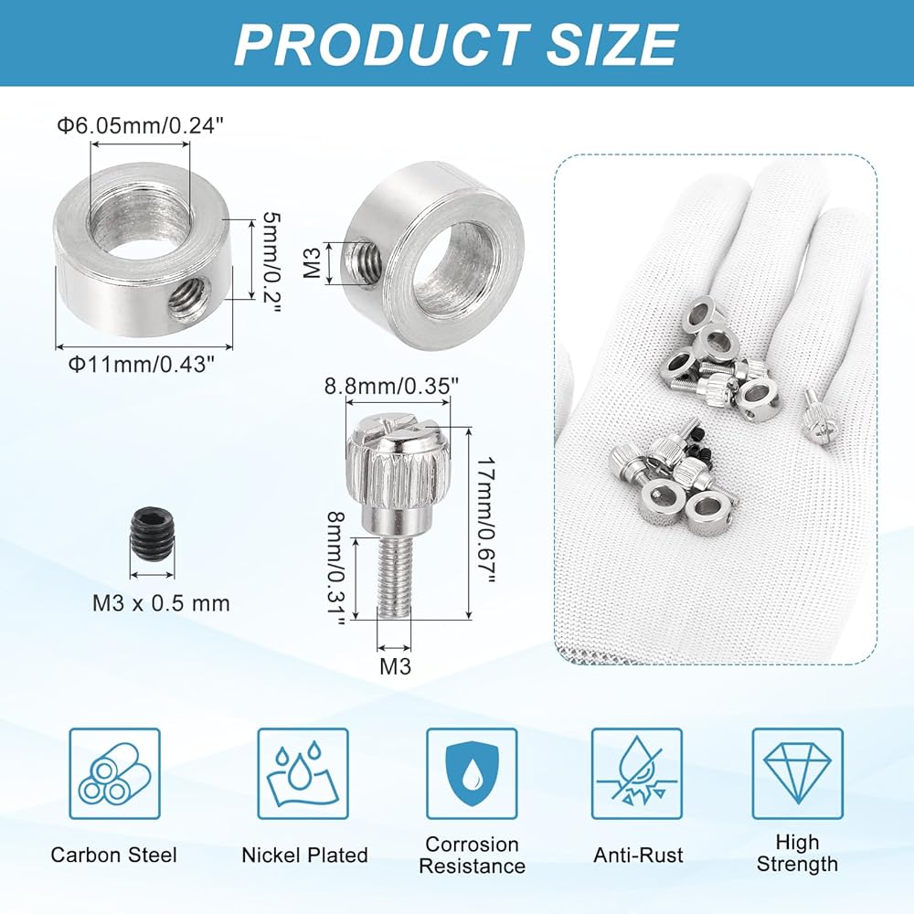 PATIKIL 6pcs Set Screw Collars 6.05mm Bore Shaft Collars, 11mm OD, 5mm Height with 6pcs M3 Hand Screws, Landing Gear Stopper Wheel Collar, Silver