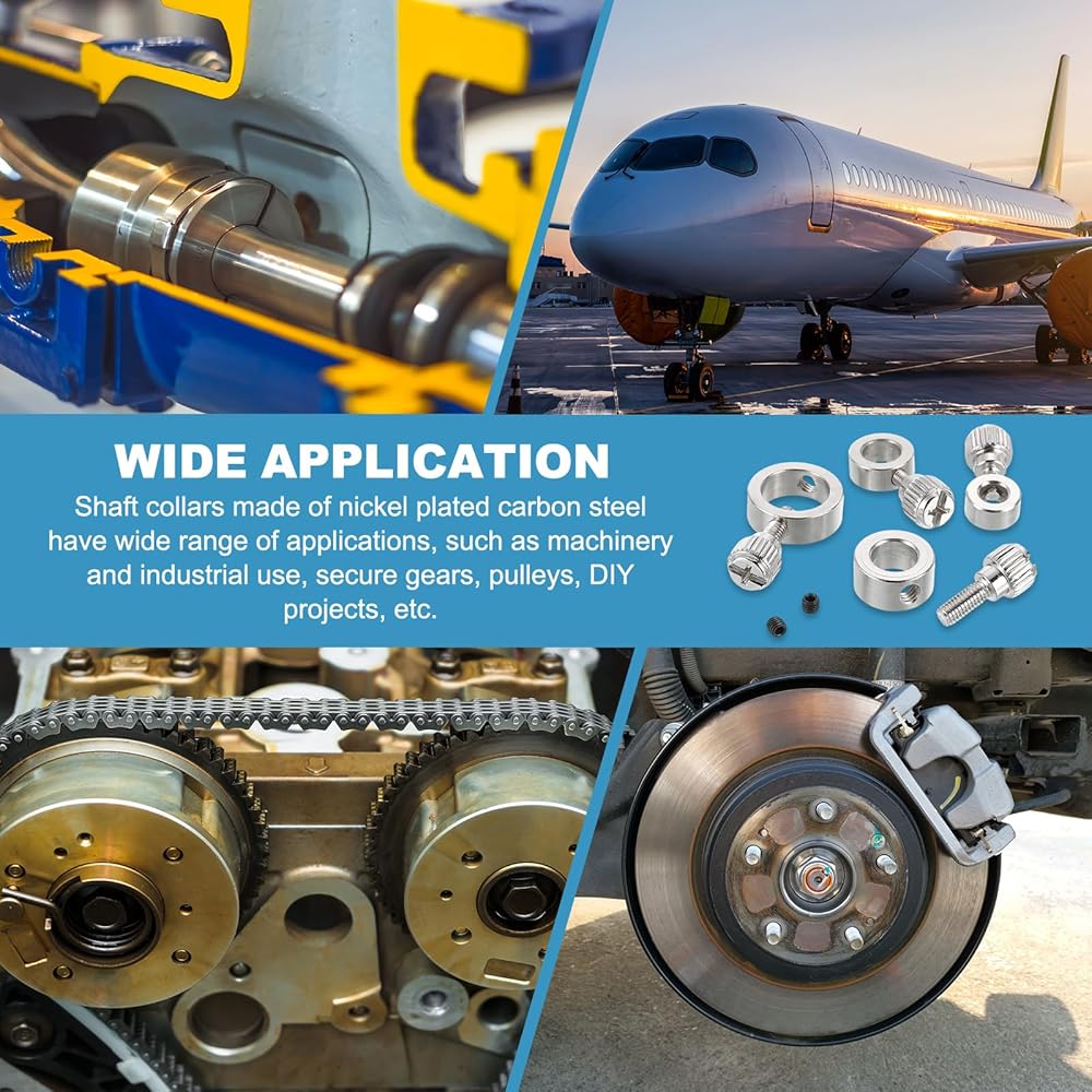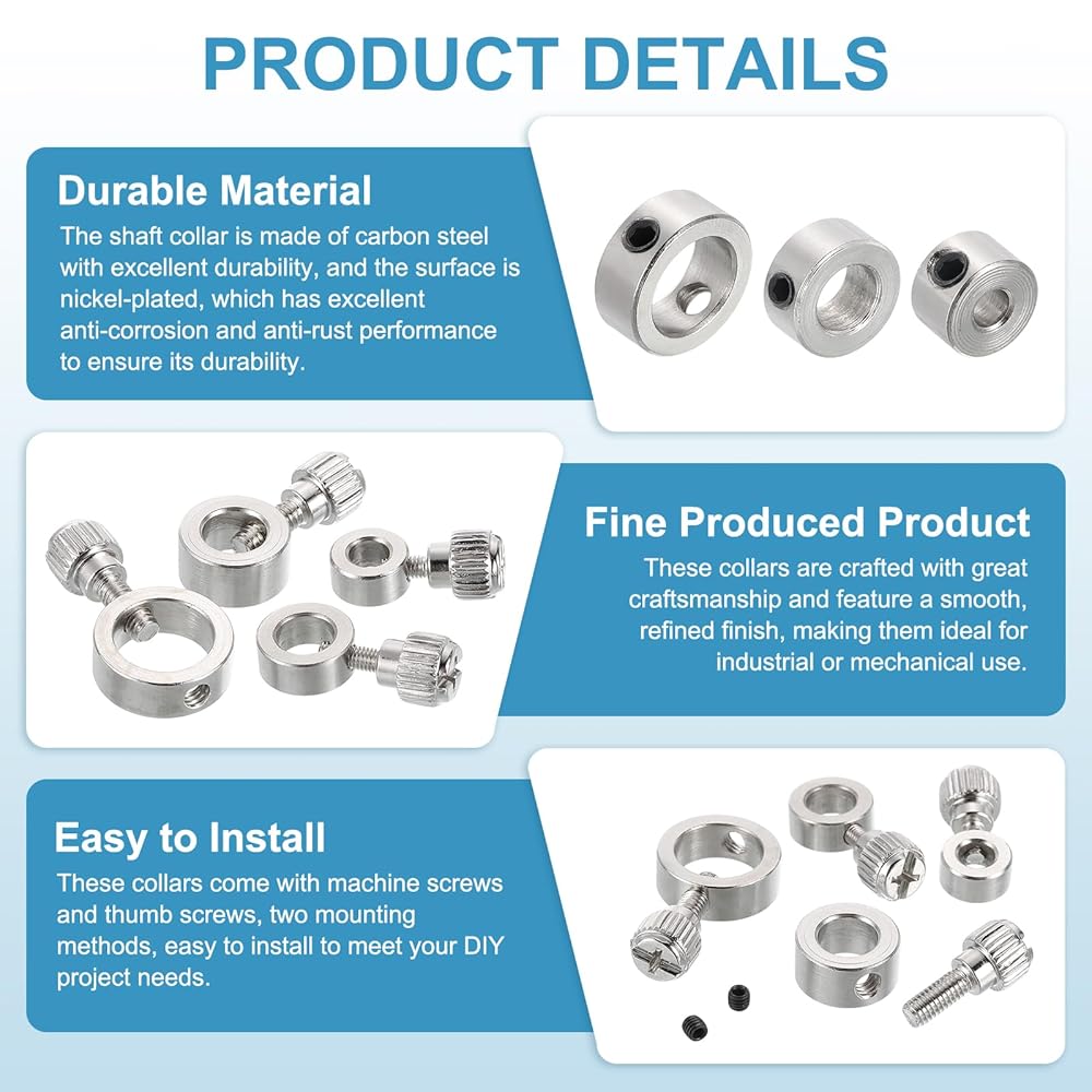 • Instruction: These collars are equipped with nickel plated hand screws, which makes them easy to be installed on the shaft, just slide the collar onto the desired position and tighten the screw by hand to finish the installation, no extra tools are required.