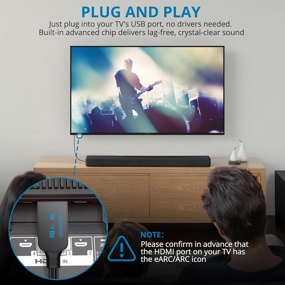 【Plug and Play】Just plug the HDMI ARC to RCA cable into your TV's USB port for power. No additional software or drivers required. The built-in audio processing chip extracts audio signals efficiently, delivering clear, stable sound