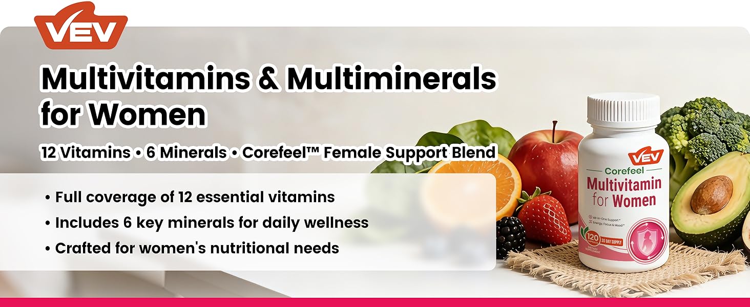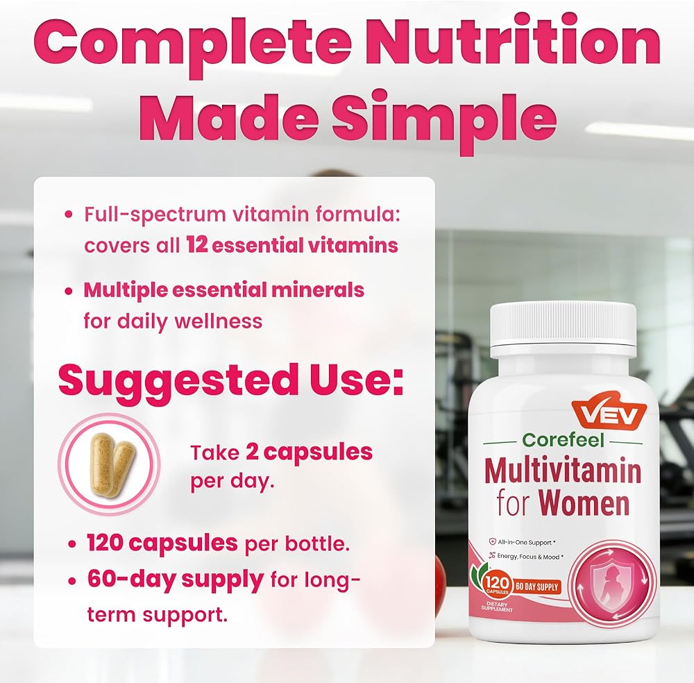 Complete Women's Nutrition: Our vitamins for women provide 12 essential vitamins (A, C, D, B-complex) and 6 key minerals (calcium, magnesium, zinc) to help bridge nutrient gaps and support energy levels, a balanced mood, and bone health, keeping you strong and vibrant through busy days