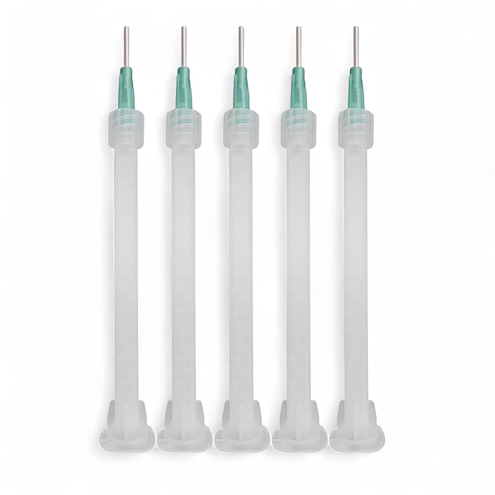 Revolutionize your adhesive application with Maven's Quadro Mixing Nozzles, designed for 50ml two-part adhesive cartridges. These innovative nozzles feature an integrated screw-on cap for precise needle attachment, allowing for accurate dispensing in hard-to-reach areas. The advanced quadro-style mixing elements deliver consistent, thorough blending while requiring less back pressure than traditional spiral mixers. At approximately two-thirds the length of conventional mixers, these nozzles significantly reduce material waste. The universal bayonet fitting makes them compatible with standard 50ml cartridges, perfect for epoxy, silicone, urethane, acrylic, and polyester adhesives. Constructed from durable polypropylene, these mixing tips offer improved service life and reliable performance. The combination of efficient mixing geometry and precision dispensing capability makes these nozzles an essential tool for professional adhesive applications where accuracy and material savings matter.