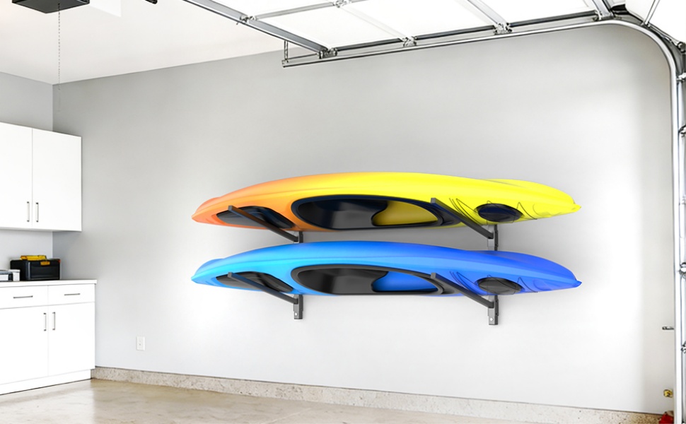 Space-Saving Wall Storage: Keeps kayaks off the floor to maximize available garage space, ideal for compact areas where floor space is limited