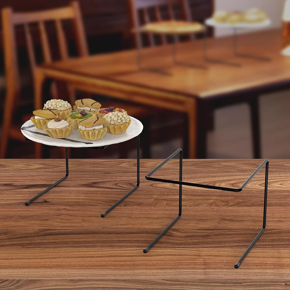High-Quality Material: The pizza table display risers is made of high-quality metal, and the metal surface has a black anti-scratch coating, which is sturdy and durable, and is not easy to deform or fade