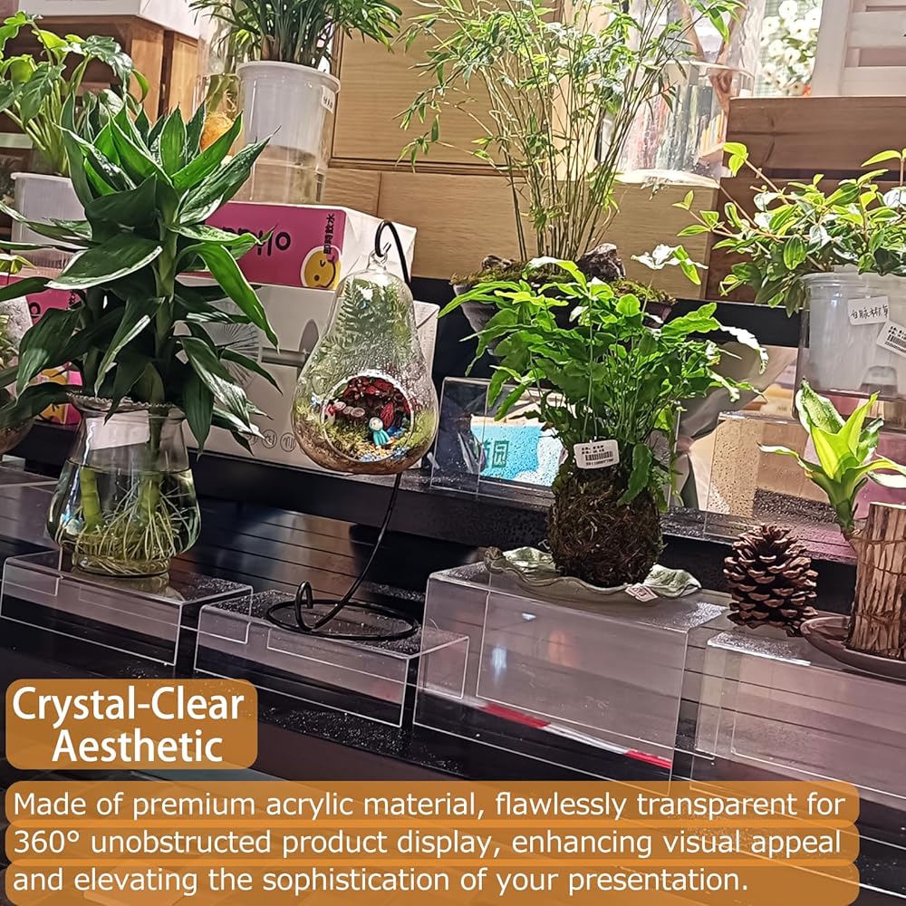 Premium Acrylic Material: Made of high-quality thick transparent acrylic, these acrylic display stands are scratch-resistant and durable, ensuring long-lasting use for retail stores, collectibles, vendor booth and desserts
