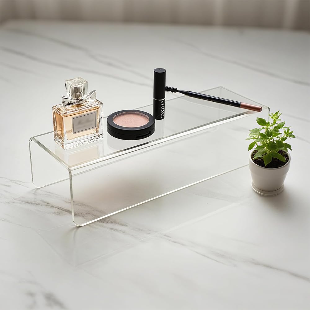 Crystal-Clear Transparency: The ultra-clear acrylic shelves showcases items without visual obstruction, perfect for jewelry displays, office display, cupcake display and retail product staging