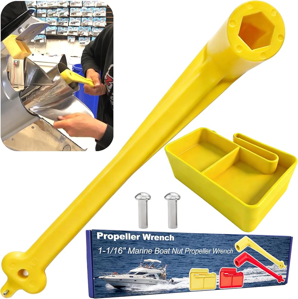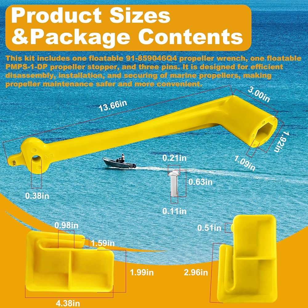 【Package Contents】This Marine Boat Prop kit includes a floating 1-1/16 inch Propeller Wrench (replaces 91-859046Q4) and a Prop Stop Block (replaces PMPS-1-DP). These two tools are used together to meet the needs of propeller installation, removal, and maintenance. Three pins are also included for prying out tab washers.