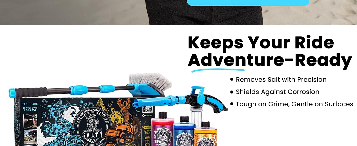 POWERFUL SALT & DIRT REMOVAL: Salt Wash prevents corrosion by eliminating salt deposits, 4WD & RV Wash removes mud and grime, and Engine Flush cleans and protects outboard motors, ensuring long-lasting performance in marine and off-road environments.