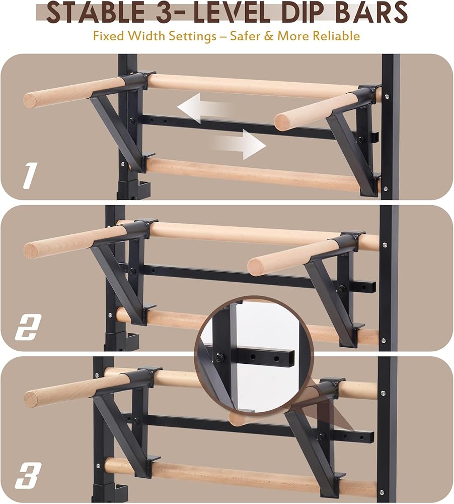 Durable Beechwood Construction – Crafted with premium beechwood rungs, this wall-mounted stall bar is significantly less prone to cracking or splitting compared to standard solid wood pull-up ladders, ensuring years of reliable performance.