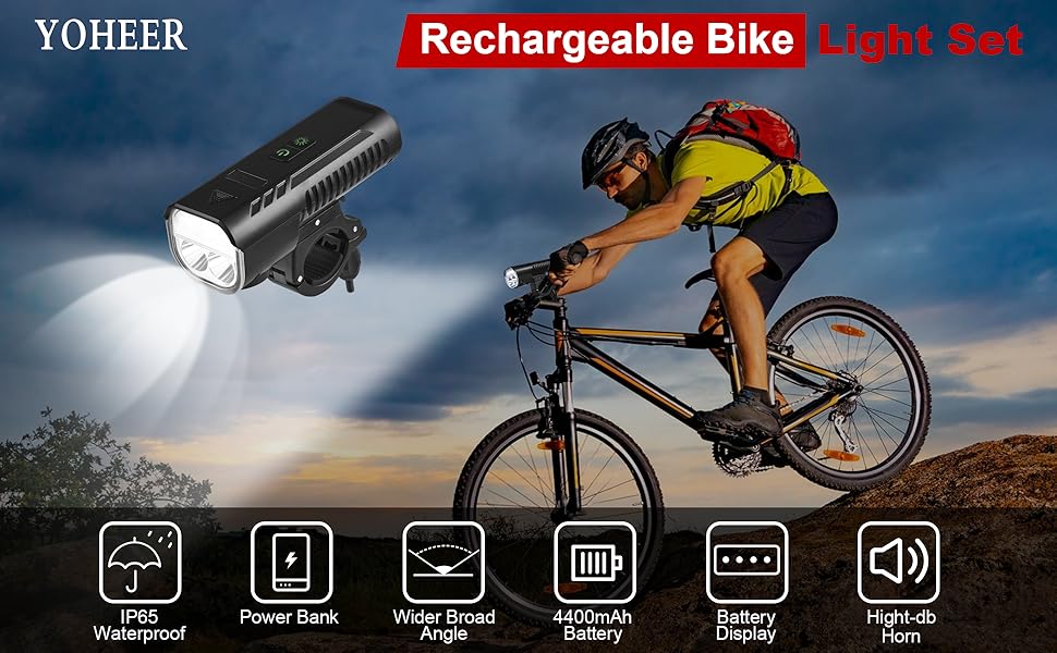 【SUPER BRIGHT & LONG RUNTIME】Bicycle Headlight has 4*T6 LEDs with a maximum output of 1000 lumens,illuminating the road you ride at night. 4400 mAh large capacity lithium battery , 3.5-6 hours running time ,which can meet your long time riding lighting needs.