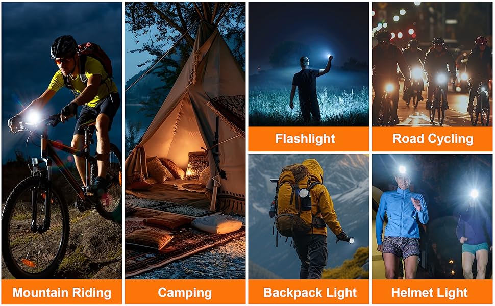 【5 LIGHTING MODES】5 lighting modes(Strong Light / Low Light / Fast Flash / SOS , /Slow Flash ) , which can adapt to different scenes. Portable design for night running, camping, fishing, night work and activities, etc.