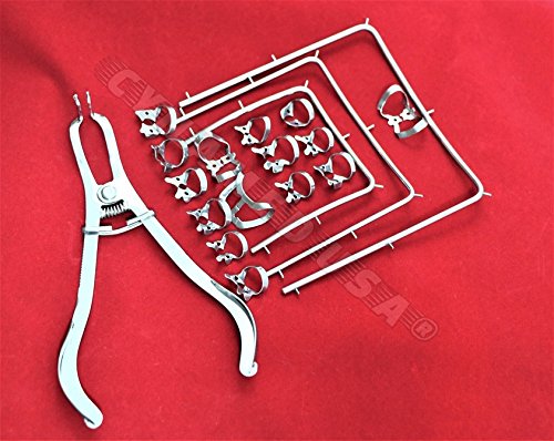EXCELLENT QUALITY ( GERMAN STAINLESS STEEL ) Rubber Dam Kit of 18 Pieces with Frame Punch Clamps Dental Instruments SET INCLUDE FOLLOWING 1 Pcs Ivory Light Weight Rubber Dam Clamp 3 Pcs Rubber Dam Frame 5" 4" 3" 15 PCS Rubber Dam Clamps #8A#56#207#2A#0#1#30#208#211#9#7#212#14#206#8 Retail Value >199 USD! ASTM STANDARD 304 TYPE STAINLESS STEEL