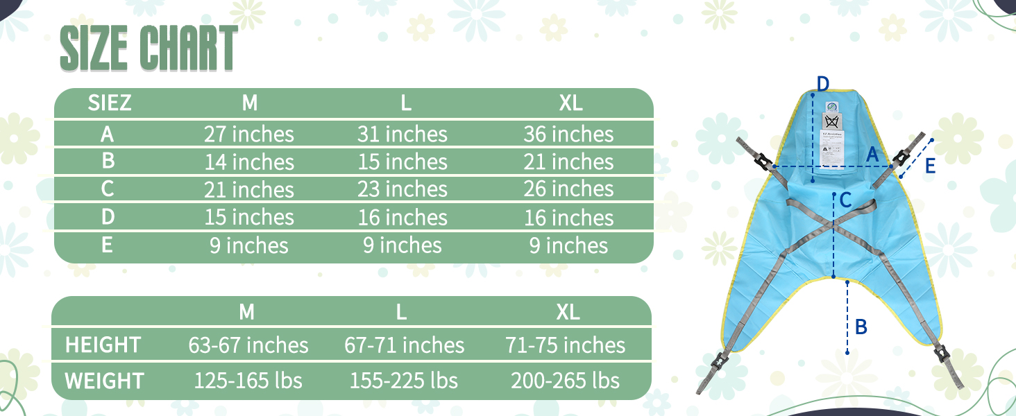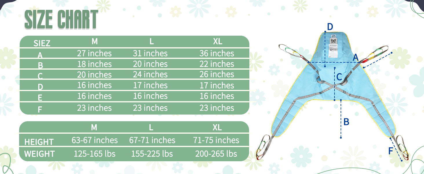 Three Ways to Use:1.Divided Leg:For patients with a certain level of body support and stability.The wide opening of the sling's leg part not only facilitates wearing, but also improves the convenience of the patient's hygiene care 2.The position of the leg's is crossed:For patients with poor trunk stability,in this way it can providing a more stable support effect.3.Overlap the part of sling's leg:It is suitable for people who cannot fully open their thighs and pelvis.when using divided leg slings, the leg portions of the sling should be overlapped to bring the legs together to avoid causing stretching injuries to the patient's pelvis
