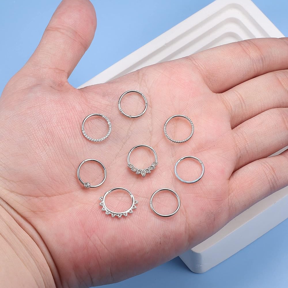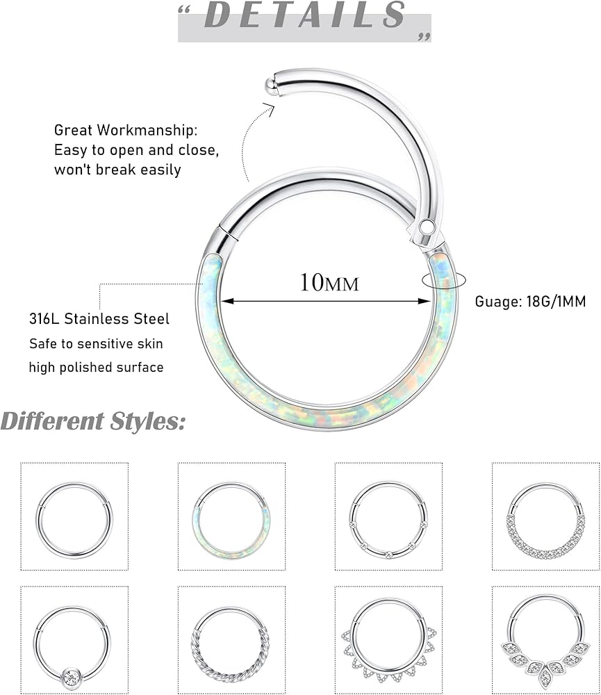 Multi-Function-- The clicker piercing rings hoops can be used as nose rings hoops, septum rings, helix earrings, conch piercing, rook hoops, cartilage hoop earrings, lip rings, etc.