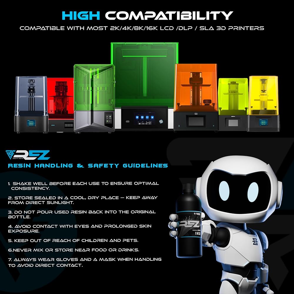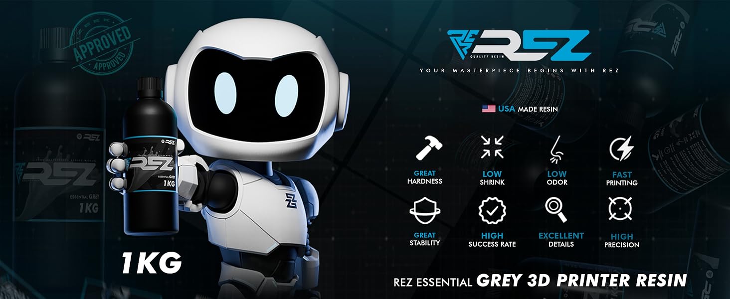 HIGH STRENGTH & DURABILITY Formulated for impact resistance and mechanical toughness, Rez Resin delivers solid, reliable prints that won't crack or chip easily. Perfect for functional prototypes, mechanical parts, and high-stress applications.