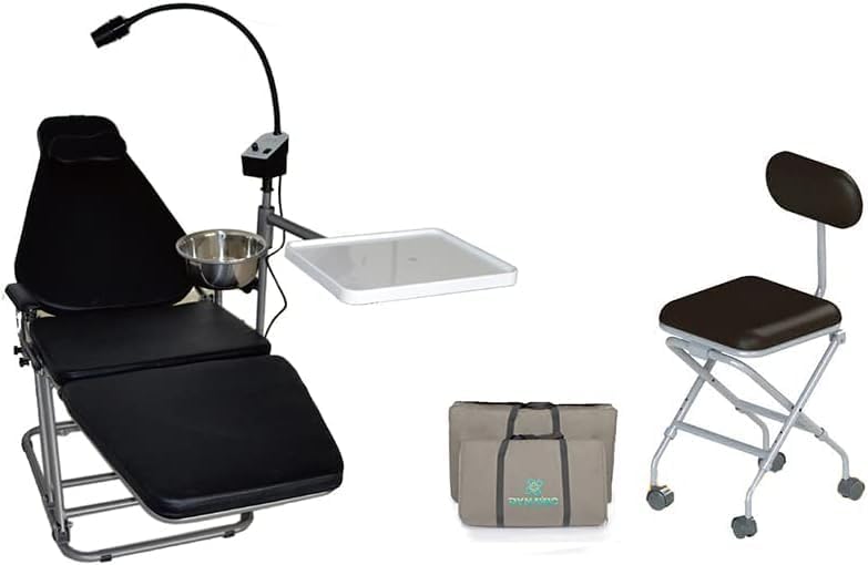 REEHUT USA Dynamic Portable Black Chair with Doctor's Chair with LED Operating Exam Light with Instrument Tray and Carry Bag