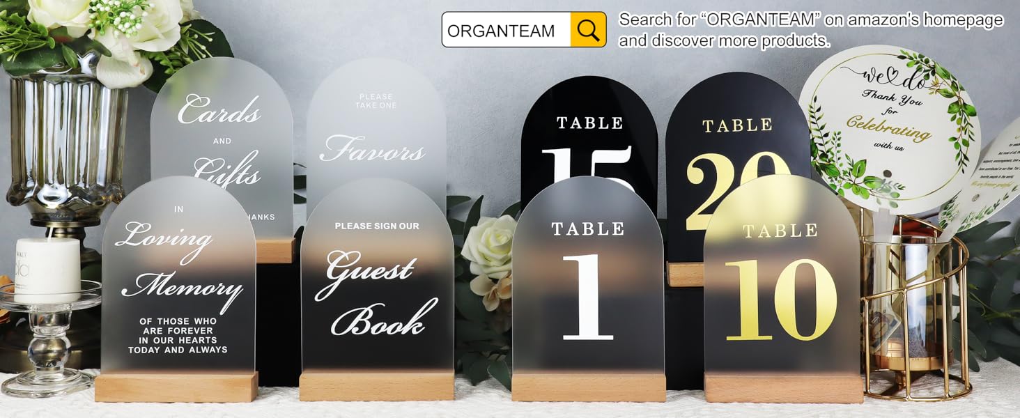 WIDE RANGE OF APPLICATIONS - ORGANTEAM's frosted acrylic blanks and wooden stands are the perfect foundation for creating a wide variety of items for your events! Use them to make: acrylic table numbers for wedding reception, reserved table signs, picture displays for wedding centerpieces, cards and gifts signs for wedding, food signs labels, brunch table decorations, rustic wedding decoration, birthday, anniversary, bridal shower, home parties, baby shower, graduation, Valentine's Day, Corporate Parties or any Special Event! Versatile for any location.