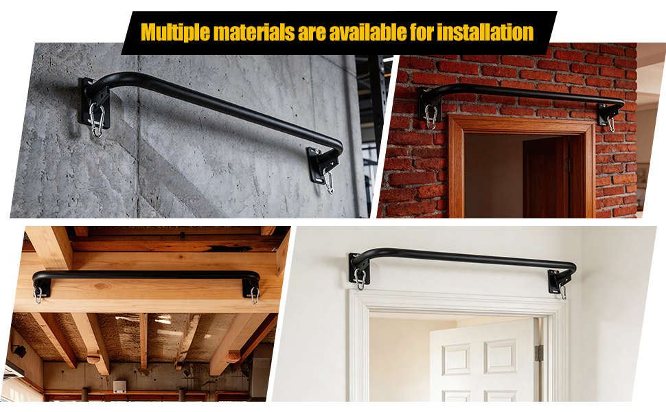 3. Easy Installation & Space-Saving Wall Mount Design Transform any space into a gym! This wall mount pull up bar is easy to install on any solid wall, ceiling, or joist with included hardware. Its mounted design is space-saving, freeing you from door frame limitations and unstable over-the-door pull up bars. Enjoy a permanent, solid workout station in your garage, home gym, or apartment.