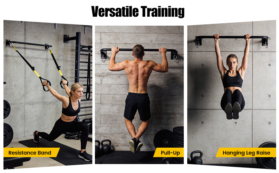 1. Heavy Duty Wall Mounted Pull Up Bar with 600 lbs Capacity This heavy duty pull up bar features sturdy carbon steel and 8mm thick steel plates, supporting 600 lbs for secure strength training. Perfect for pull ups, chin ups, and dead hangs, this solid wall mounted pull up bar is ideal for home gym, garage, or indoor use. It outperforms flimsy doorway models with its rock-solid, wall-mounted stability.