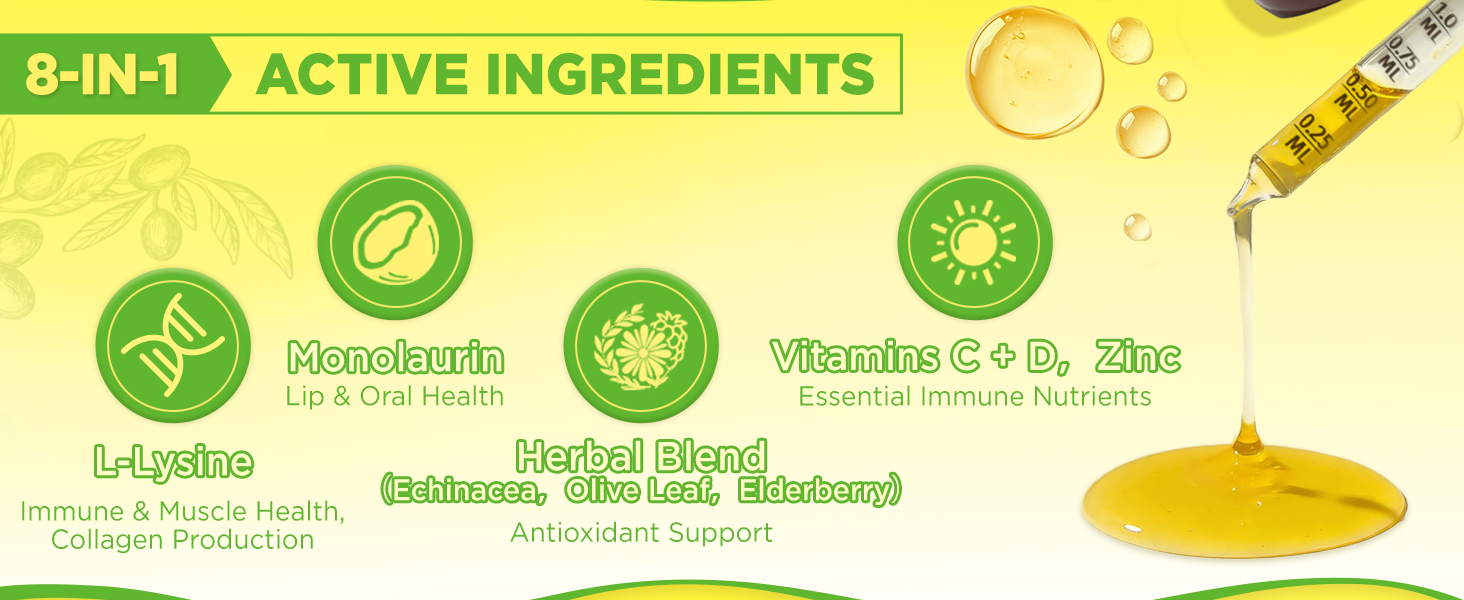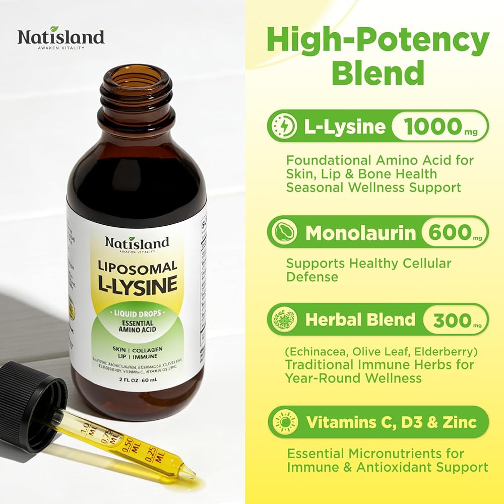 Herb Blend for Whole-Body Wellness: Struggling with low energy or inconsistent nutrition? This L-Lysine drops add Echinacea, Elderberry, and Olive Leaf Extract to support immune function, energy metabolism and lip comfort. Perfect for students, professionals, and seniors