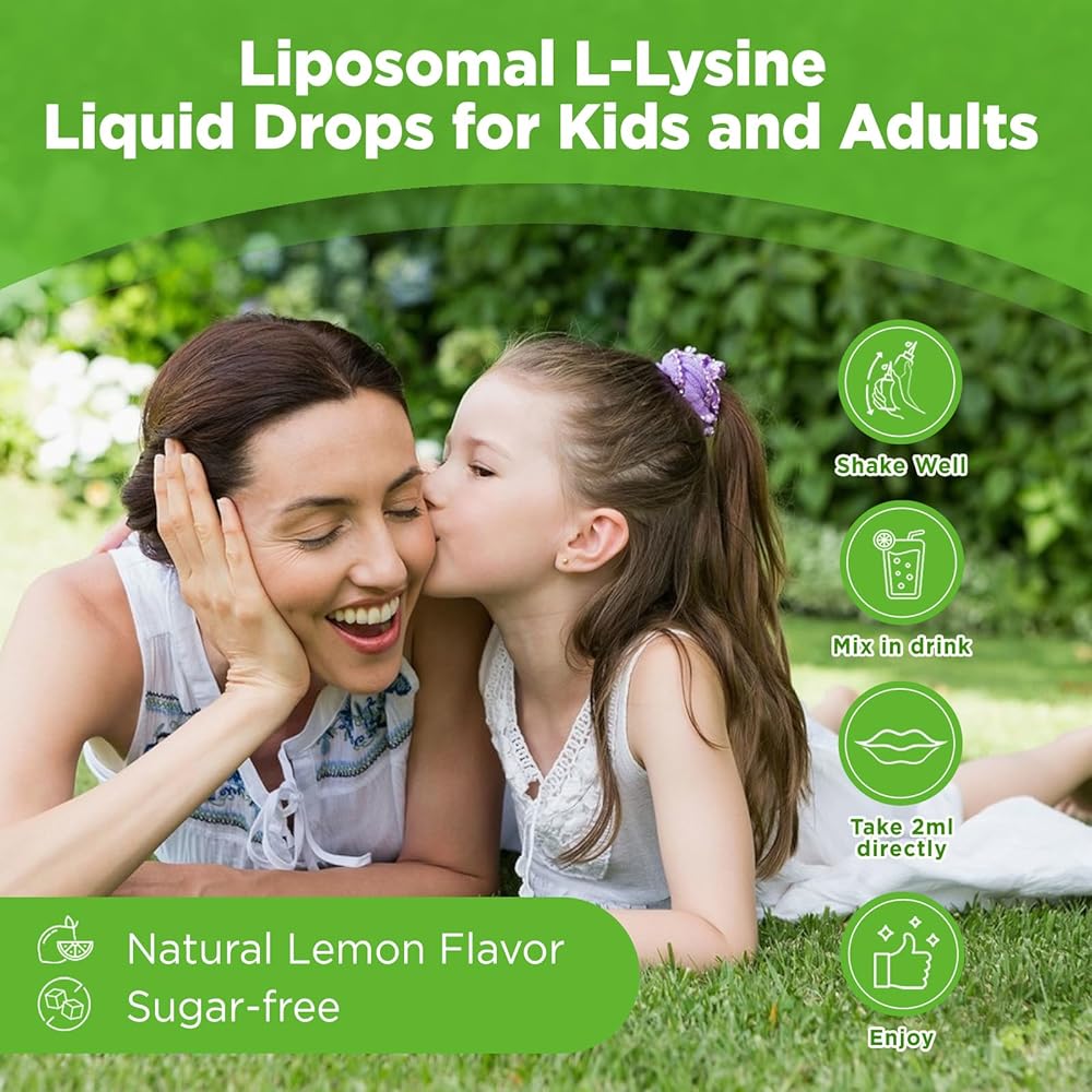 Maximized Absorption with Liposomal Technology:Our L-Lysine liquid formula uses advanced liposomal technology for superior absorption and bioavailability, ensuring you get the full potency of active ingredients.Simply take 2 ml for adults and 1 ml for kids. Enjoy your L-Lysine drops—take it directly or mix it into water, juice, or smoothies
