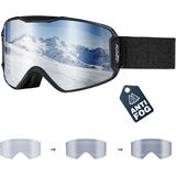 With its OTG (Over The Glasses) design and adjustable non-slip strap, VOZAPOW Ski Goggles fit securely over prescription glasses and ski helmets, providing all-around safety and a stable fit for men, women, and youth. Perfect for skiing, snowboarding, ice skating, motorcycling, or mountain riding.