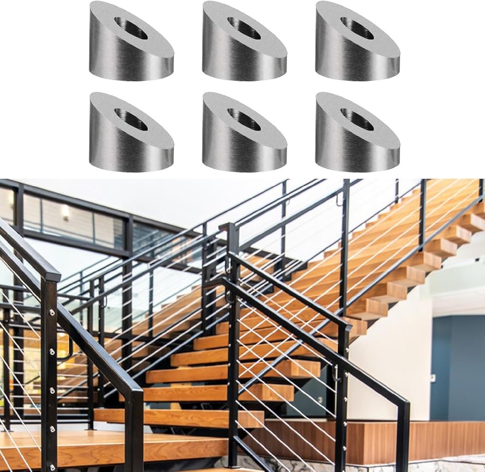 - 【Rust Resistant】: These Angle Beveled Washer for stair railings are designed to resist rust and term long. They are suitable for indoor or outdoor applications on wooden, steel, or aluminum deck posts or stair railing .