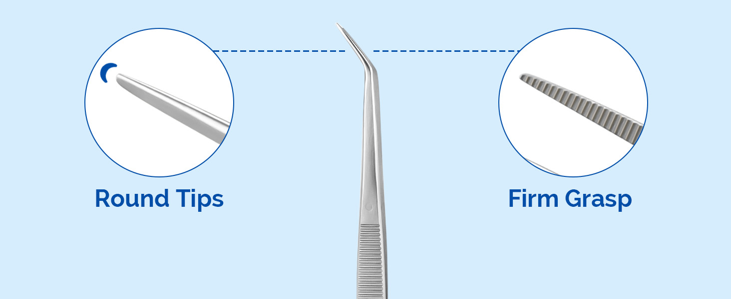 - Serrated Tip: JMU dental tweezers equipped with serrated tips to ensure a secure grip