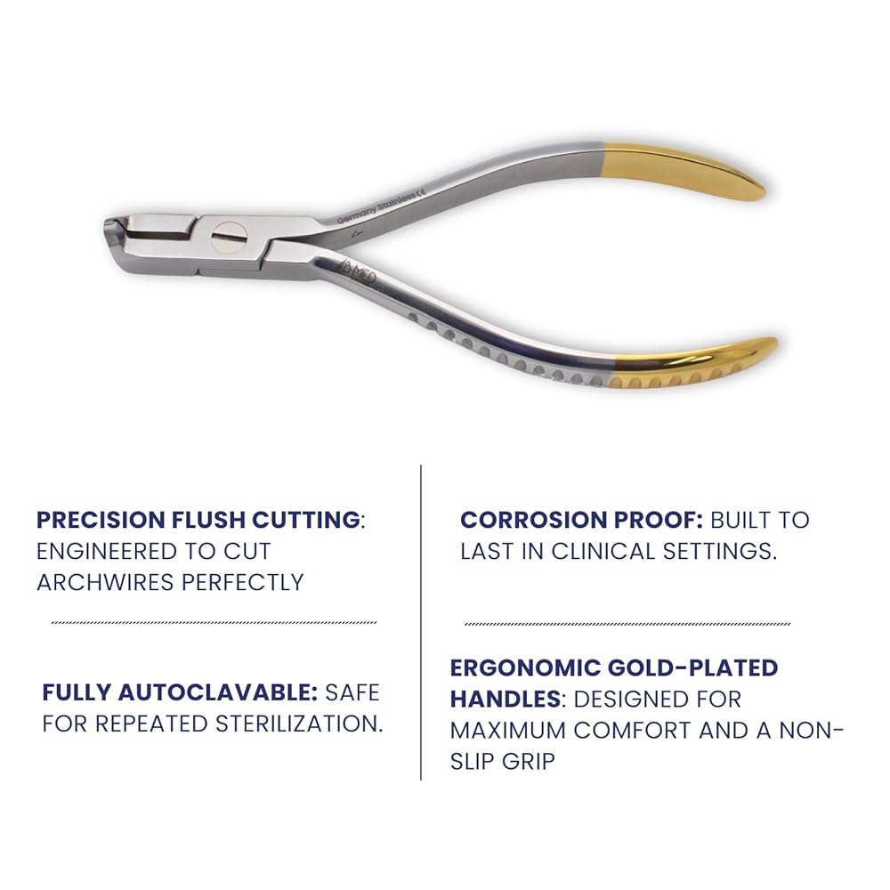 Precision Distal End Cutting: Designed specifically for trimming archwire ends flush to the bracket – reduces irritation and improves patient comfort