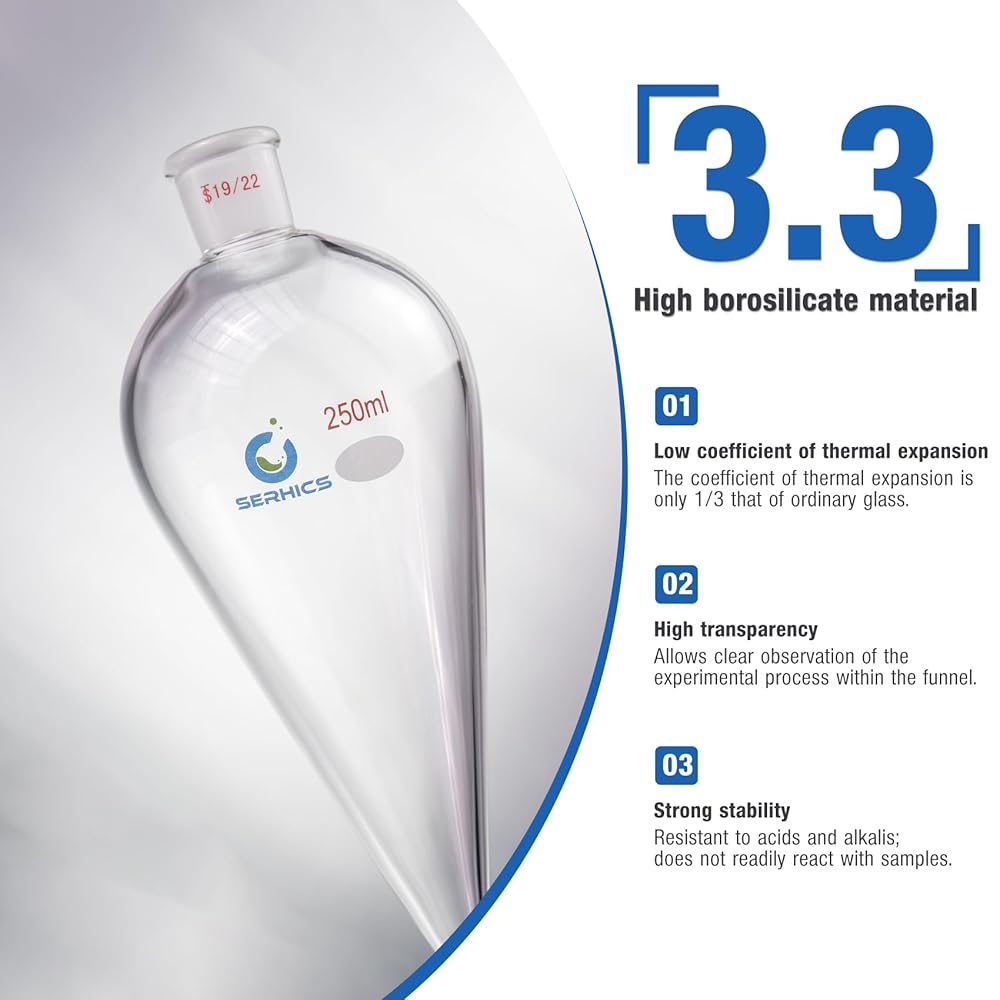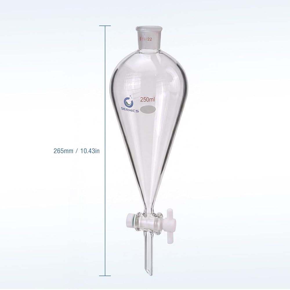 Applications:The conical separating funnel is widely used in chemistry, biochemistry, pharmaceuticals, and environmental science and liquid extraction processes