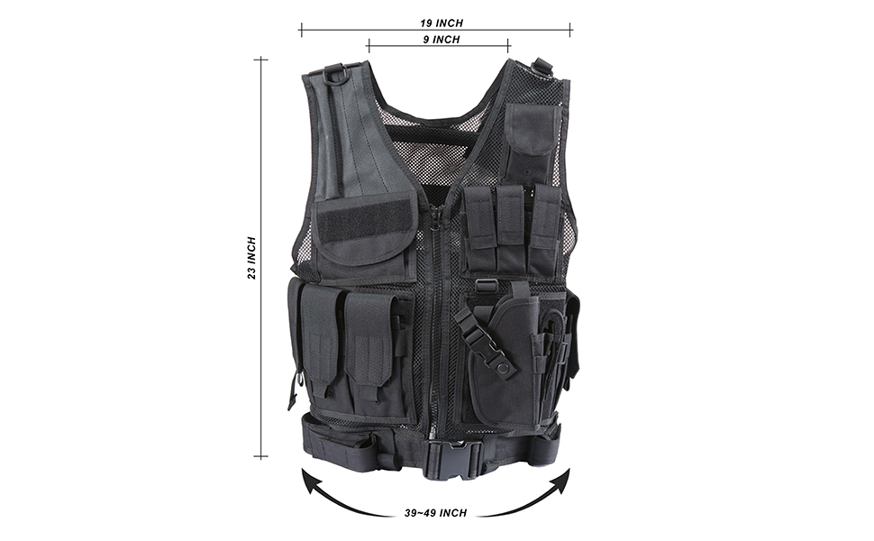 Our take: Lancer Tactical's Cross Draw Vest is an exceptional piece of tactical gear that is wholly customizable. One size fits most as most aspects of this vest unit are adjustable at multiple points. Included with vest package you will find an adjustable belt, many pouches and a medium sized handgun holster making this ensemble an incredible value for those looking to accessorize and gear up for their next adventure.