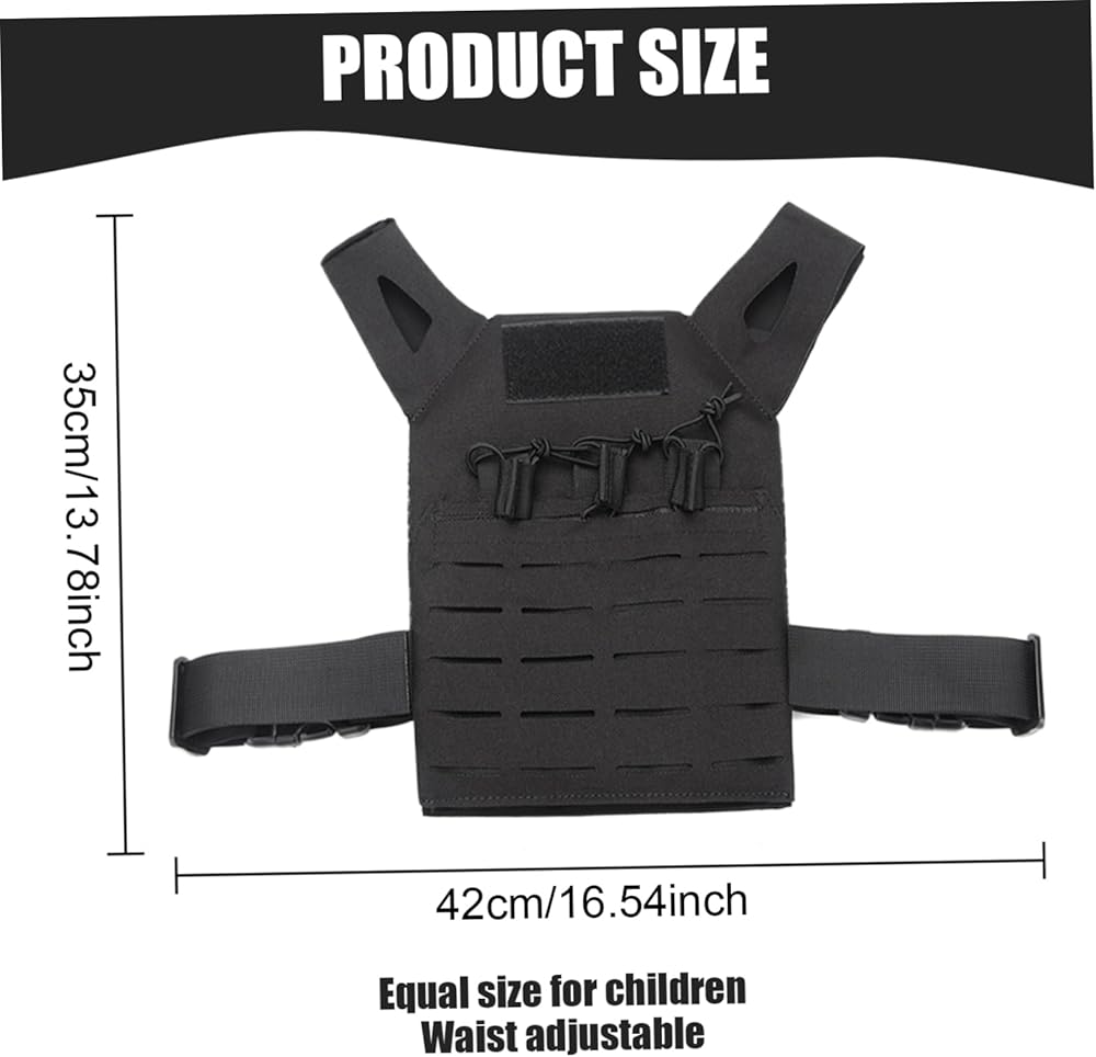 Kids Vest, Waterproof & Wear-Resistant Nylon Vest with Adjustable Belt One Size Airsoft Vest Kids Costume with Hidden Pocket for Outdoor Hunting Training, Black,sports Description:
