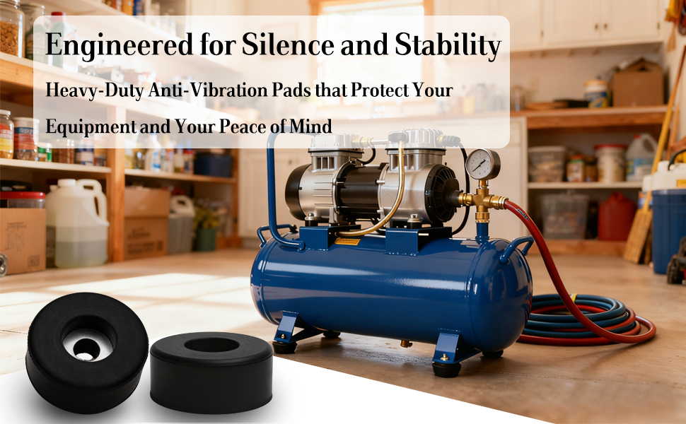 Universal Fit for Multiple Applications - These versatile anti-vibration feet are ideal for air compressors, generators, pressure washers, and subwoofers. Use them to eliminate resonance under speakers, stabilize wobbly gym equipment, or protect floors from furniture.