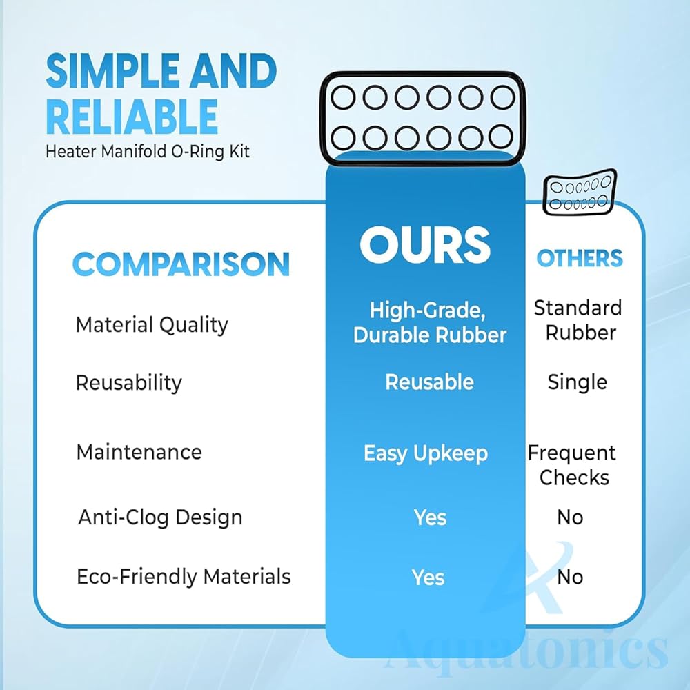 NO MORE LEAKS: If you start noticing leaks around the edges of your heater manifold, it's time to replace the o-ring kit. The Aquatonics o ring silicone for heated pool is a necessary part when the manifold starts leaking, creating a superior, ultra-tight seal that prevents water from entering.