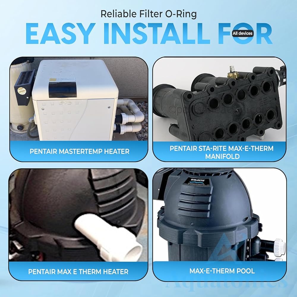 OPTIMAL FIT FOR WIDE RANGE OF MODELS: The Aquatonics o ring silicone kit ensures enhanced compatibility with multiple brands and models, including Pentair MasterTemp Heaters: 460792, 460793, 460730, 460731, 460732, 460733, 460734, 460735, 460736, 460737, 460805, and 460806, and Max-E-Therm Heaters: SR200NA, SR200HD, SR200LP, SR333NA, SR333HD, SR333LP, SR400NA, SR400HD, and SR400LP.