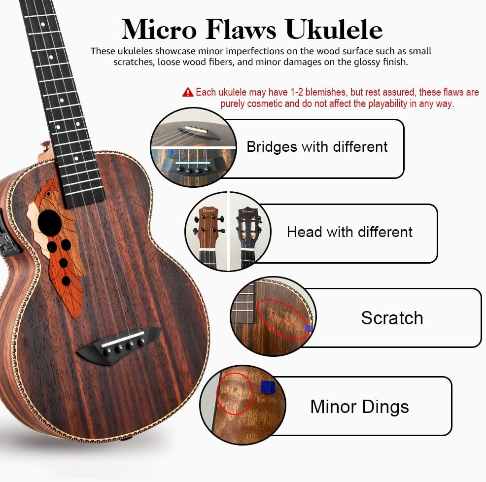 Minor Cosmetic Imperfections: The ukulele may have minor cosmetic flaws, all of which are superficial and do not affect its playability.