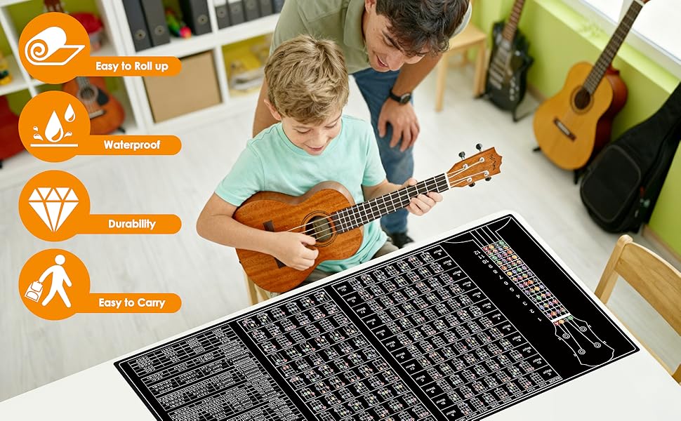 Durable 80x40cm Rubber Tool: Lightweight (800g) yet sturdy rubber material resists creases/wear; large size keeps interval charts & diatonic progressions readable while you play.