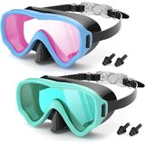 COOLOO 2 Packs Kids Goggles with Nose Cover, 180° Wide View Swimming Goggles for Kids 4-16, No More Hair Snags Anti-Fog No-Leak Snorkel Mask for Boys Girls Youth