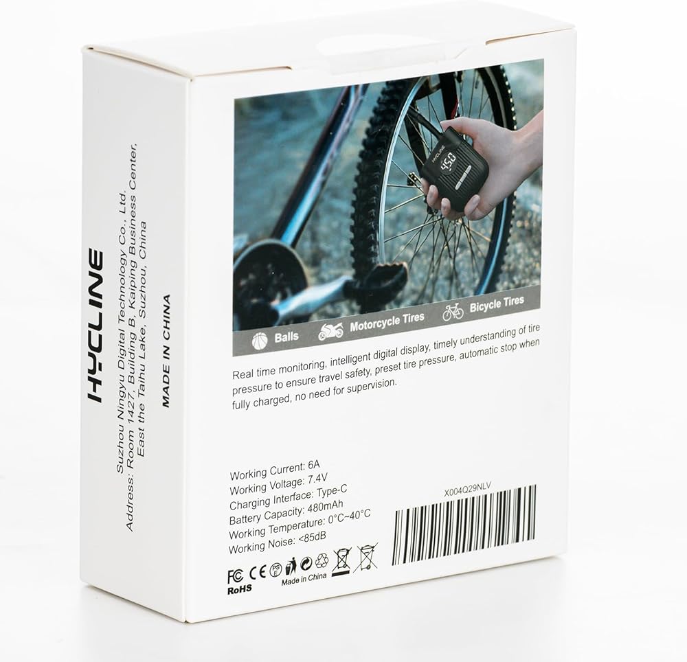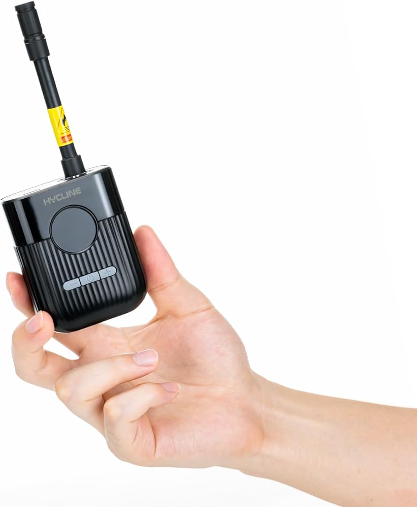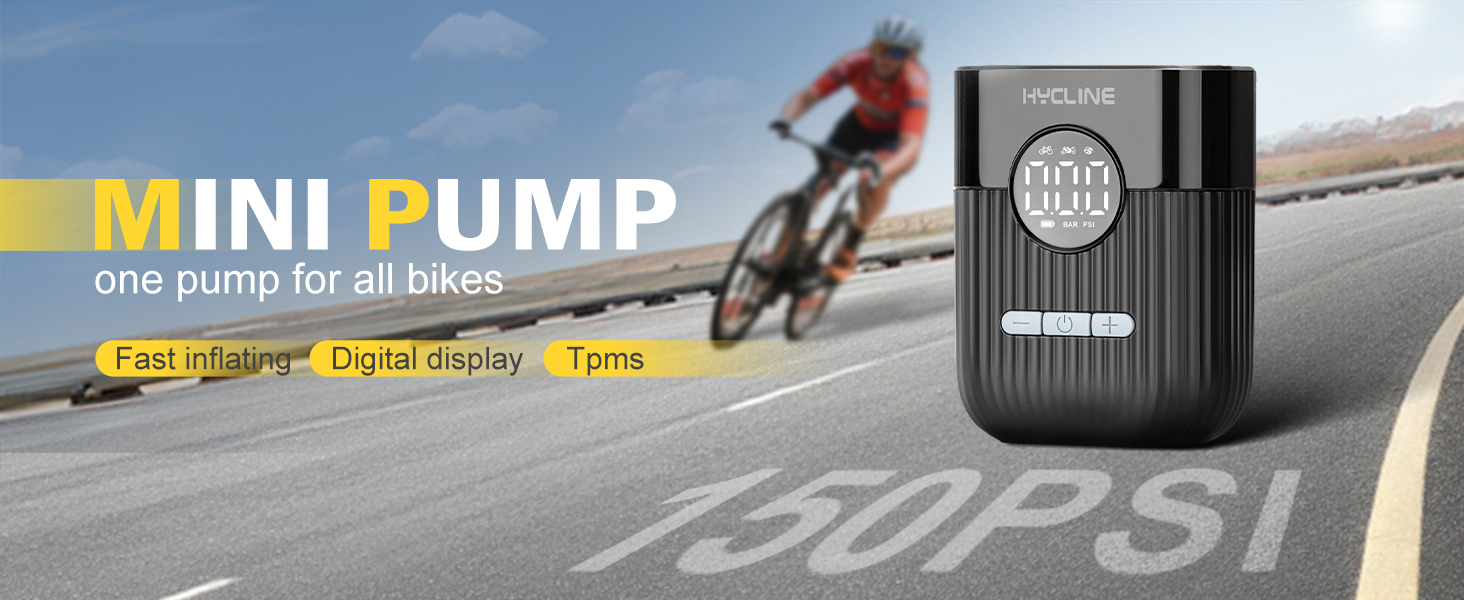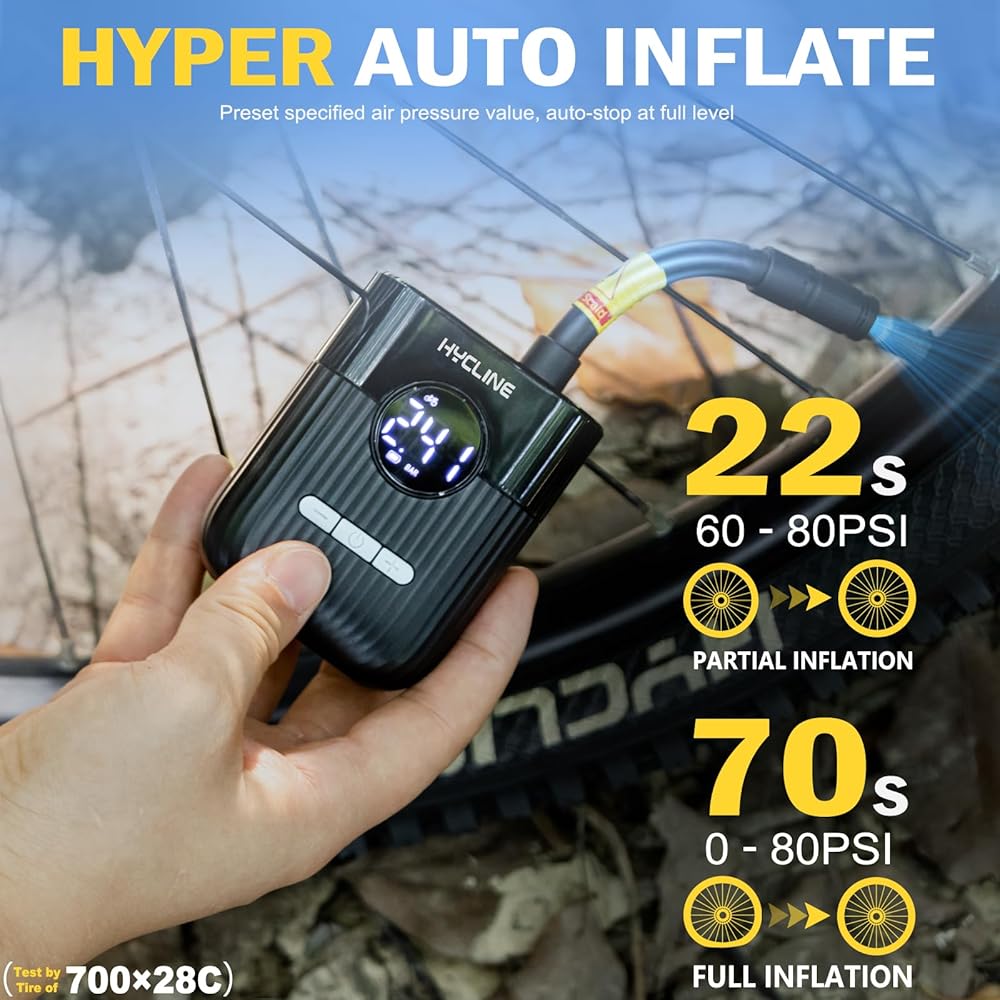 Hycline Mini Electric Bike Pump: 30s Fast Inflate 150 PSI High Pressure Gauge with Presta & Schrader Valve - Bicycle Tire Pump for Bikes Motorcycles Balls - Auto‑Stop Rechargeable Portable Air Pump