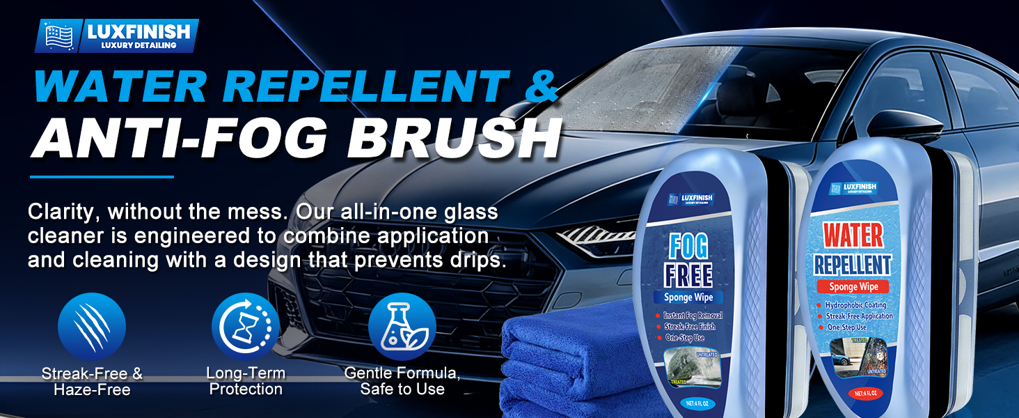 Complete Kit, Dual Protection: This professional set includes a water-repellent brush, an anti-fog brush, and two microfiber towels. Easily brush on and wipe to apply both strong water beading and long-lasting anti-fog protection to your glass