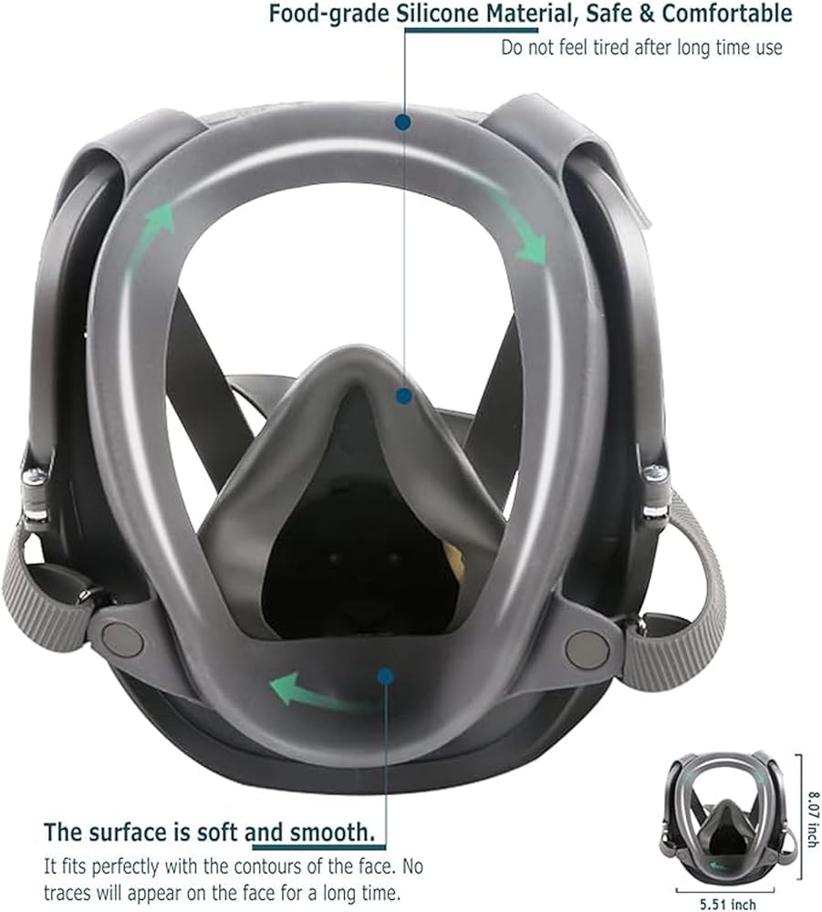 COMFORT MATERIAL – Made of silicone and thermoplastic elastomer materials. Lightweight and well balanced full face design and silicone face seal enhance comfort and durability. The full face design provides additional protection
